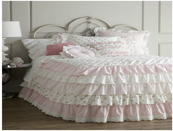Camryn skirt bedding set with alluring ruffles and skillfully stitched pillow shams in white and pink gives your princess a royal treat. Linen bedding by Camryn is made of cotton and polyester that gives comfort, cuteness, and durability all the time. You can find this ruffles bedding at http://www.horchow.com .