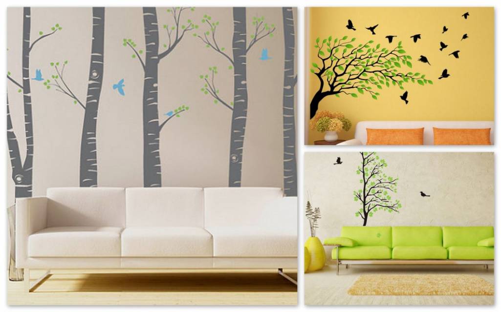 These green leaves, trees / plants and flying birds wall art decals have brought the nature to very much contemporary living spaces and do dress the back drop of modern furniture. Most advantage fact of these vinyls are removable and will not ruin any of wall surface and it can be applied to any clean smooth and flat or textured walls. These stickers have priced for $ 78.00.