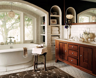 Sometimes you might need a chair, to sit in front of the mirror, or a curtain to separate the toilet from the bath tub. Also, small details besides using the space under the sink to make a cabinet can make the sterile-looking bathroom look more like a regular room. Experts in psychology and “feng shui” say that paintingz in the restrooms are calming and act well upon our physiological system. Cold bathroom floor tiles can be covered with some small carpet, and if you add some wood elements, it would be even warmer.