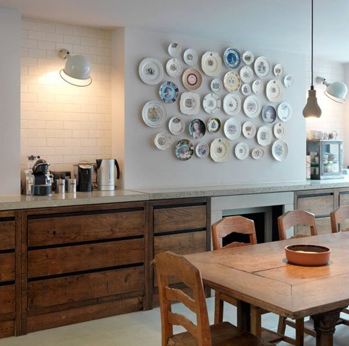 If you like to have a rustic and vintage look in your bare wall, check your China cabinet, which has filled with beautiful plates and platters and pull them out. You can hang these in anyway you like to fill up the space and look out for them through out the year without hiding them inside and get appreciation from your guests at all occasions.