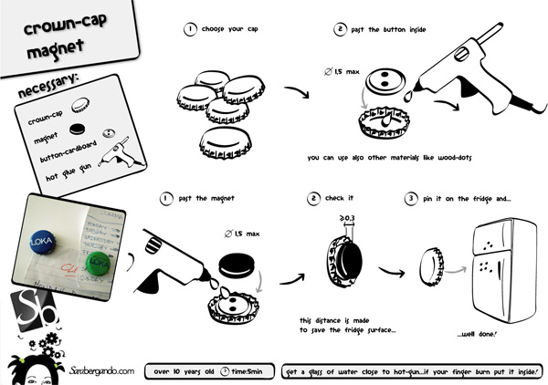 These cute magnets made from bottle caps can be very interesting for your fridge. You don’t need a lot of time, or a lot of material – it’s easy! Think about the environment, and in a same time, think about your wallet!!